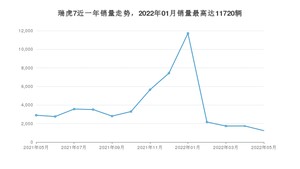 2022年5月,瑞虎7销量为1236辆,同比下降57.32%,环比下降28.8%。2021年05月-2022年05月份,瑞虎7销量为50485辆,同比增长9.81%。