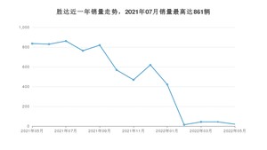 2022年5月,胜达销量为20辆,同比下降97.6%,环比下降53.49%。2021年05月-2022年05月份,胜达销量为6303辆,同比下降49.98%。