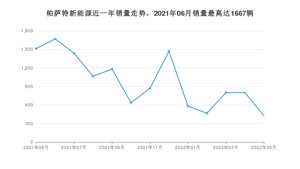 2022年5月,帕萨特新能源销量为427辆,同比下降71.76%,环比下降46.63%。2021年05月-2022年05月份,帕萨特新能源销量为12909辆,同比增长10.04%。
