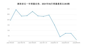 2022年5月,撼路者销量为13辆,同比下降93.37%,环比下降82.19%。2021年05月-2022年05月份,撼路者销量为2295辆,同比下降13.75%。