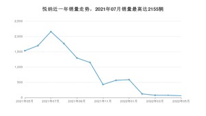2022年5月,现代品牌总体销量达到5930辆,其中悦纳销量达到59辆,占品牌总销量的0.99%。