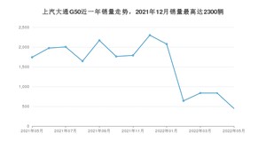 2022年5月,上汽大通G50销量为447辆,同比下降74.33%,环比下降46.53%。2021年05月-2022年05月份,上汽大通G50销量为20215辆,同比下降16.46%。