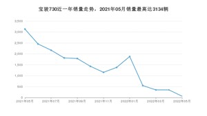 2022年5月,宝骏730销量为62辆,同比下降98.02%,环比下降82.29%。2021年05月-2022年05月份,宝骏730销量为18504辆,同比下降65.43%。