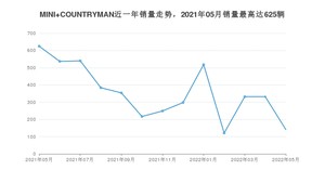 2022年5月,MINI COUNTRYMAN销量为141辆,同比下降77.44%,环比下降57.53%。2021年05月-2022年05月份,MINI COUNTRYMAN销量为4648辆,同比增长1.62%。