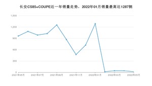 2022年5月,长安CS85 COUPE销量为17辆,同比下降98.23%,环比下降58.54%。2021年05月-2022年05月份,长安CS85 COUPE销量为8771辆,同比下降47.87%。