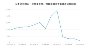 2022年5月,五菱宏光S3销量为320辆,同比下降83.72%,环比下降48.3%。2021年05月-2022年05月份,五菱宏光S3销量为28037辆,同比下降36.1%。