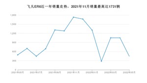 2022年5月,飞凡ER6销量为445辆,同比下降9.37%,环比下降57.7%。2021年05月-2022年05月份,飞凡ER6销量为12463辆,同比增长188.5%。
