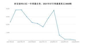 2022年5月,新宝骏RS-3销量为36辆,同比下降98.46%,环比下降75.51%。2021年05月-2022年05月份,新宝骏RS-3销量为26751辆,同比下降49.49%。