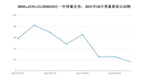 2022年5月,MINI JCW CLUBMAN销量为16辆,同比下降72.41%,环比下降36%。2021年05月-2022年05月份,MINI JCW CLUBMAN销量为388辆,同比下降30.09%。