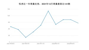 2022年5月,悦虎销量为86辆,同比增长22.86%,环比下降15.69%。2021年05月-2022年05月份,悦虎销量为781辆,同比下降21.82%。