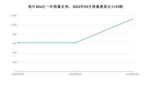 2022年5月,枫叶60s销量为1125辆,环比增长82.63%。2021年05月-2022年05月份,枫叶60s销量为2357辆,