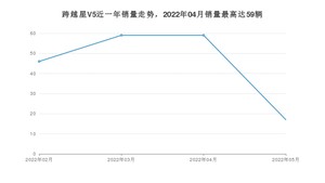 2022年5月,跨越星V5销量为17辆,环比下降71.19%。2021年05月-2022年05月份,跨越星V5销量为181辆,