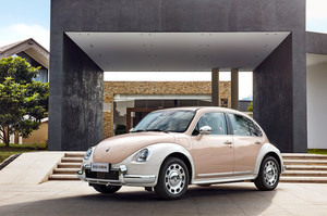 芭蕾猫的侧面和车尾致敬了甲壳虫的设计风格,大溜背的造型加上圆润的车身线条,十分的复古、可爱。而镂空轮毂、圆形镀铬外后视镜以及镀铬门把手的加入,可以说芭蕾猫将复古元素彻底的拉满,行驶在路上绝对能够赚足回头率。