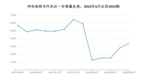 2022年6月,呼和浩特市汽车总销量为3404辆,同比下降39.79%,环比增长20.84%。2021年06月-2022年06月份,呼和浩特市总销量为53501辆,同比下降20.58%。在最近1年中,呼和浩特市销量在2021年12月达到最高,销量为6434辆。