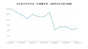 2022年6月,齐齐哈尔市汽车总销量为1186辆,同比下降60.47%,环比增长11.26%。2021年06月-2022年06月份,齐齐哈尔市总销量为25980辆,同比下降24.94%。在最近1年中,齐齐哈尔市销量在2021年06月达到最高,销量为3000辆。