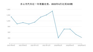 2022年6月,舟山市汽车总销量为323辆,同比下降77.09%,环比下降33.81%。2021年06月-2022年06月份,舟山市总销量为13018辆,同比下降31.6%。在最近1年中,舟山市销量在2022年01月达到最高,销量为1712辆。