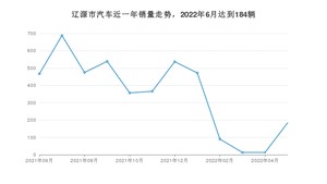 2022年6月,辽源市汽车总销量为184辆,同比下降60.6%。2021年06月-2022年06月份,辽源市总销量为4201辆,同比下降35.05%。在最近1年中,辽源市销量在2021年07月达到最高,销量为688辆。