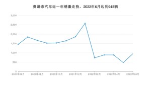 2022年6月,贵港市汽车总销量为948辆,同比下降34.89%,环比增长99.16%。2021年06月-2022年06月份,贵港市总销量为18016辆,同比下降19.27%。在最近1年中,贵港市销量在2022年01月达到最高,销量为2576辆。