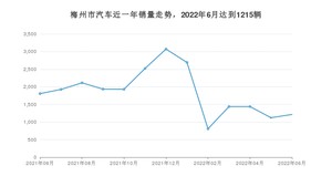 2022年6月,梅州市汽车总销量为1215辆,同比下降32.76%,环比增长8.29%。2021年06月-2022年06月份,梅州市总销量为24018辆,同比下降18.58%。在最近1年中,梅州市销量在2021年12月达到最高,销量为3072辆。