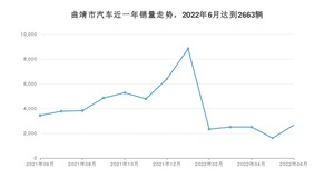 2022年6月,曲靖市汽车总销量为2663辆,同比下降22.68%,环比增长65.3%。2021年06月-2022年06月份,曲靖市总销量为52786辆,同比下降15.09%。在最近1年中,曲靖市销量在2022年01月达到最高,销量为8824辆。