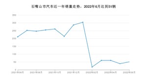 2022年6月,石嘴山市汽车总销量为51辆,同比下降75.83%,环比增长30.77%。2021年06月-2022年06月份,石嘴山市总销量为2259辆,同比下降35.64%。在最近1年中,石嘴山市销量在2022年01月达到最高,销量为304辆。