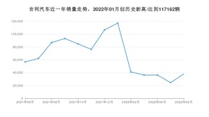 在国内市场上,吉利汽车在2022年6月的销量为38075辆,同比下降32.91%,环比增长55.35%。2021年06月-2022年06月份,吉利汽车累计销量为860168辆,较去年同期增长0.77%。