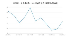 在国内市场上,江铃在2022年6月的销量为46辆,同比下降45.24%,2021年06月-2022年06月份,江铃累计销量为576辆,较去年同期增长1.77%。
