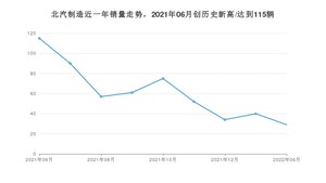 在国内市场上,北汽制造在2022年6月的销量为29辆,同比下降74.78%,2021年06月-2022年06月份,北汽制造累计销量为553辆,较去年同期下降60.22%。