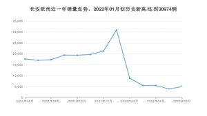 在国内市场上,长安欧尚在2022年6月的销量为4998辆,同比下降71.7%,环比增长26.92%。2021年06月-2022年06月份,长安欧尚累计销量为191646辆,较去年同期下降5.73%。