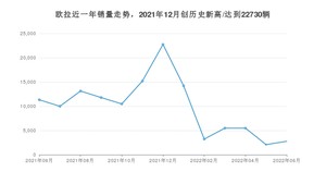 在国内市场上,欧拉在2022年6月的销量为2769辆,同比下降75.55%,环比增长32.68%。2021年06月-2022年06月份,欧拉累计销量为127843辆,较去年同期增长16.48%。