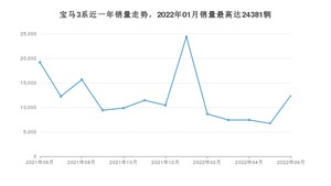 2022年6月,宝马3系销量为12475辆,同比下降35.02%,环比增长85.42%。2021年06月-2022年06月份,宝马3系销量为155344辆,同比下降25.03%。