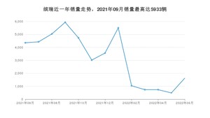 2022年6月,缤瑞销量为1620辆,同比下降62.81%,环比增长232.65%。2021年06月-2022年06月份,缤瑞销量为41197辆,同比下降47.62%。