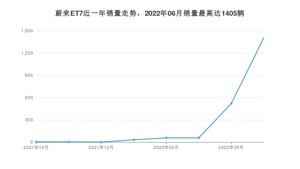 2022年6月,蔚来ET7销量为1405辆,环比增长169.67%。2021年06月-2022年06月份,蔚来ET7销量为2078辆,