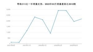 2022年6月,零跑C11销量为2178辆,环比增长12.04%。2021年06月-2022年06月份,零跑C11销量为16693辆,