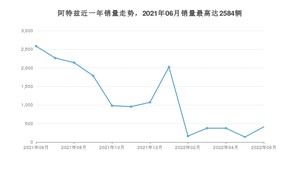 2022年6月,阿特兹销量为413辆,同比下降84.02%,环比增长201.46%。2021年06月-2022年06月份,阿特兹销量为15275辆,同比下降51.58%。