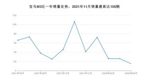 2022年6月,宝马M3销量为15辆,同比下降77.27%,2021年06月-2022年06月份,宝马M3销量为534辆,同比增长263.27%。
