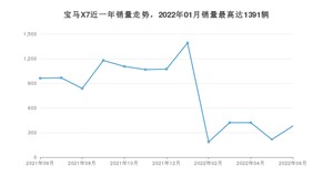 2022年6月,宝马X7销量为380辆,同比下降60.5%,环比增长75.93%。2021年06月-2022年06月份,宝马X7销量为10205辆,同比下降9.75%。