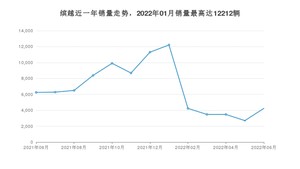 2022年6月,缤越销量为4238辆,同比下降32.16%,环比增长56.85%。2021年06月-2022年06月份,缤越销量为87657辆,同比下降12.45%。