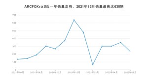 2022年6月,ARCFOX αS销量为235辆,同比增长74.07%,环比下降32.86%。2021年06月-2022年06月份,ARCFOX αS销量为3787辆,同比增长1%。