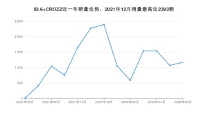 2022年6月,ID.6 CROZZ销量为1169辆,同比增长16%,环比增长9.25%。2021年06月-2022年06月份,ID.6 CROZZ销量为15477辆,同比增长221%。