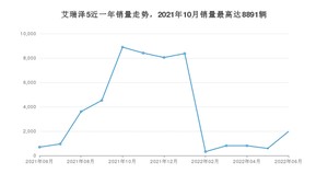 2022年6月,艾瑞泽5销量为1975辆,同比增长183.76%,环比增长237.03%。2021年06月-2022年06月份,艾瑞泽5销量为47988辆,同比增长655.6%。