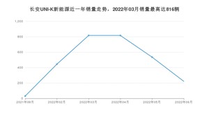 2022年6月,长安UNI-K新能源销量为221辆,环比下降58.69%。2021年06月-2022年06月份,长安UNI-K新能源销量为2862辆,