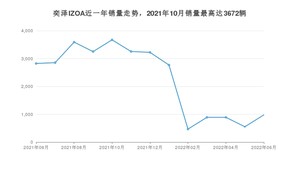 2022年6月,奕泽IZOA销量为978辆,同比下降65.37%,环比增长77.17%。2021年06月-2022年06月份,奕泽IZOA销量为29214辆,同比下降47.72%。