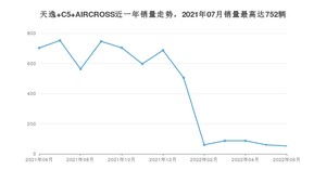2022年6月,天逸 C5 AIRCROSS销量为52辆,同比下降92.6%,环比下降13.33%。2021年06月-2022年06月份,天逸 C5 AIRCROSS销量为5603辆,同比下降49.79%。