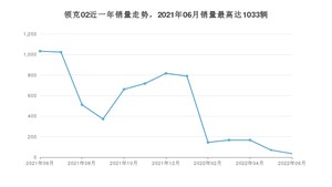 2022年6月,领克02销量为35辆,同比下降96.61%,环比下降50%。2021年06月-2022年06月份,领克02销量为6509辆,同比下降67.99%。