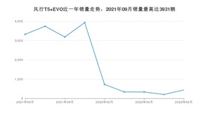 2022年6月,风行T5 EVO销量为438辆,同比下降86.83%,环比增长117.91%。2021年06月-2022年06月份,风行T5 EVO销量为16214辆,同比下降29.57%。