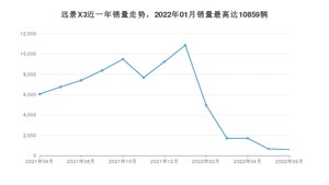 2022年6月,远景X3销量为599辆,同比下降90.1%,环比下降7.99%。2021年06月-2022年06月份,远景X3销量为75430辆,同比下降27.5%。