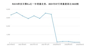 2022年6月,RAV4荣放双擎E+销量为82辆,同比下降97.54%,环比增长1.23%。2021年06月-2022年06月份,RAV4荣放双擎E+销量为26751辆,同比增长1.71%。