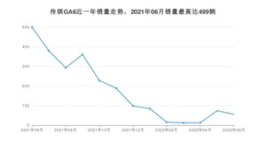 2022年6月,传祺GA6销量为56辆,同比下降88.78%,环比下降24.32%。2021年06月-2022年06月份,传祺GA6销量为2304辆,同比下降75.78%。