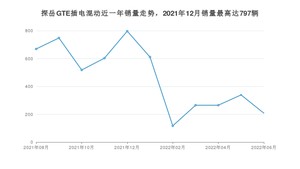 2022年6月,探岳GTE插电混动销量为208辆,环比下降38.64%。2021年06月-2022年06月份,探岳GTE插电混动销量为5140辆,
